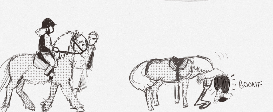 In old age, Killie and Derek are teaching a great-niece to ride. She’s acquired a tooth (not hers).
