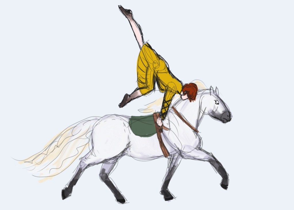 Four foot ten, bitter, ripped, with a permanent scowl, amazing arm muscles, psychic horsegirl powers and at least three awful bruises at all times… it’s Cillian Tiernan, champion jockey. What a wretched man! He’s the heart of the story, and the story is his heart.